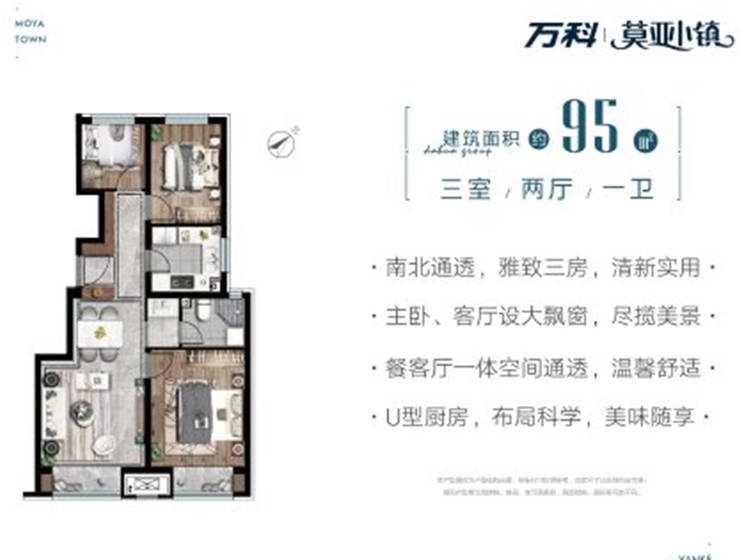 万科·莫亚小镇项目,总占地面积约58万㎡,总建筑面积约96万㎡,是大连地区较大规模的滨海住区,也是排名前列进入普兰店地区的品牌房企。项目北侧是耗资20亿元打造的滨海公园。距离普湾高铁站约6公里,距离东侧万达广场约6.7公里;项目配套大连莫亚国际营地及北师大附属学校。目前,项目主力销售的产品为1.3期小高层产品及合院别墅产品。1.3期住宅产品,户型面积在74-120平之间。合院别墅产品,主打地中海纯白风情,是大连地区少有的西班牙安达卢西亚风格的合院别墅产品。主力户型为128-148平。