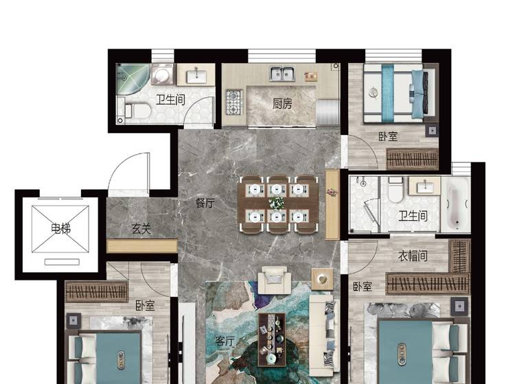 3室2厅2卫-A户型 ,3室2厅,125.23平米