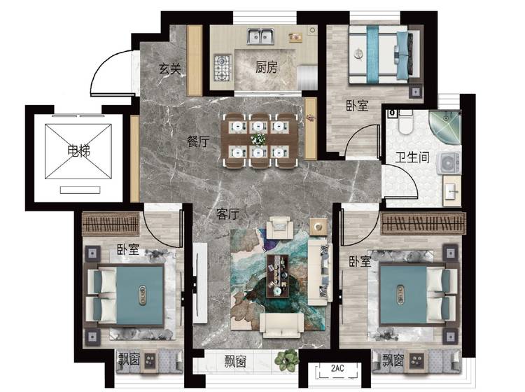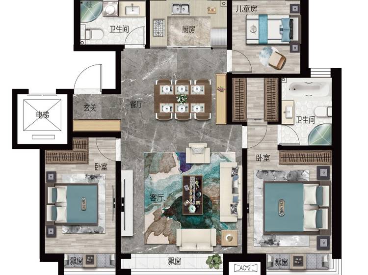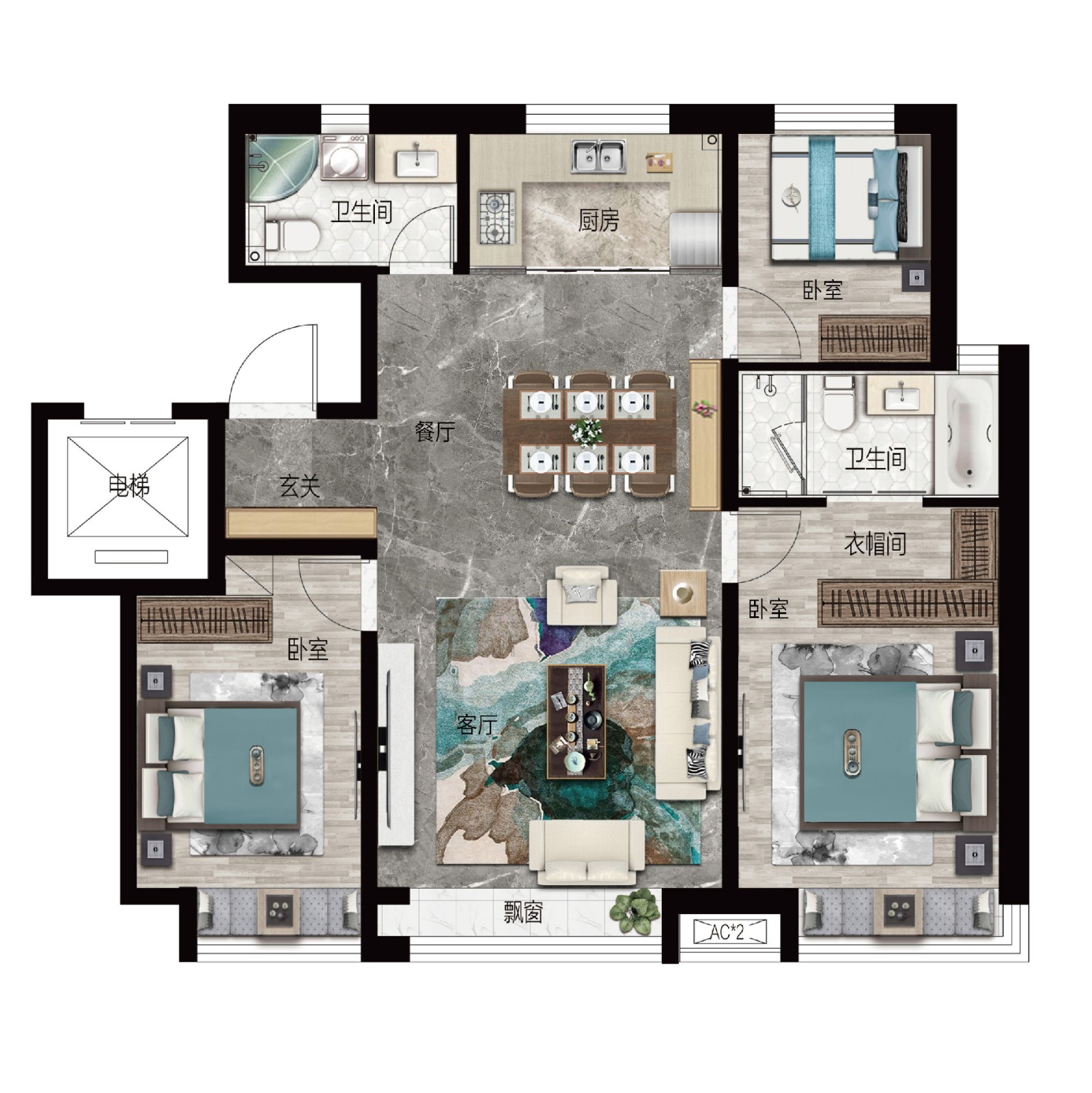 3室2厅2卫-C户型 ,3室2厅,102.78平米