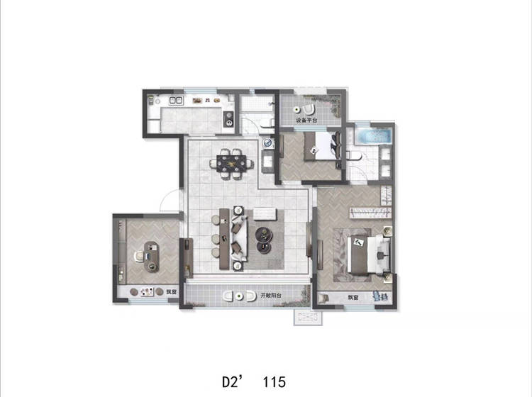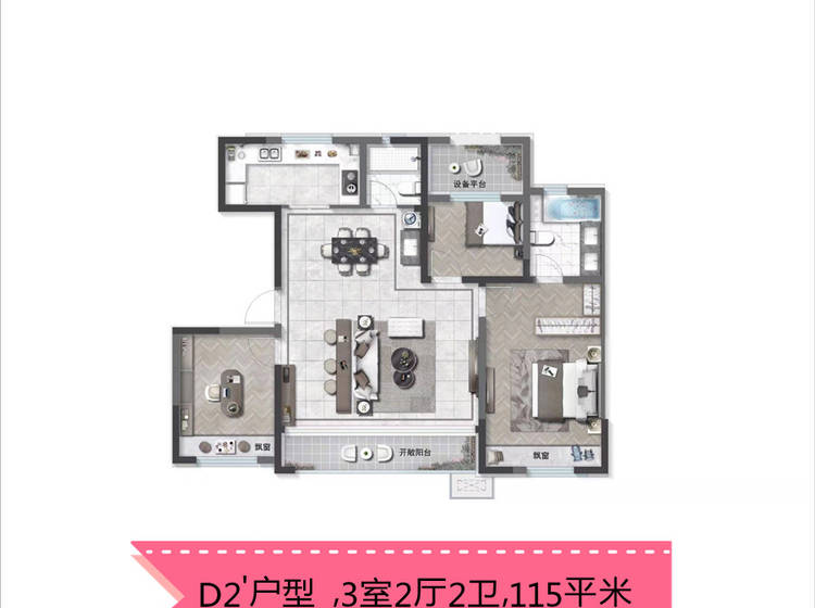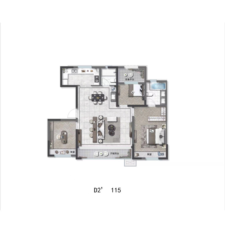 3室2厅2卫-D2'户型 ,3室2厅2卫,115平米