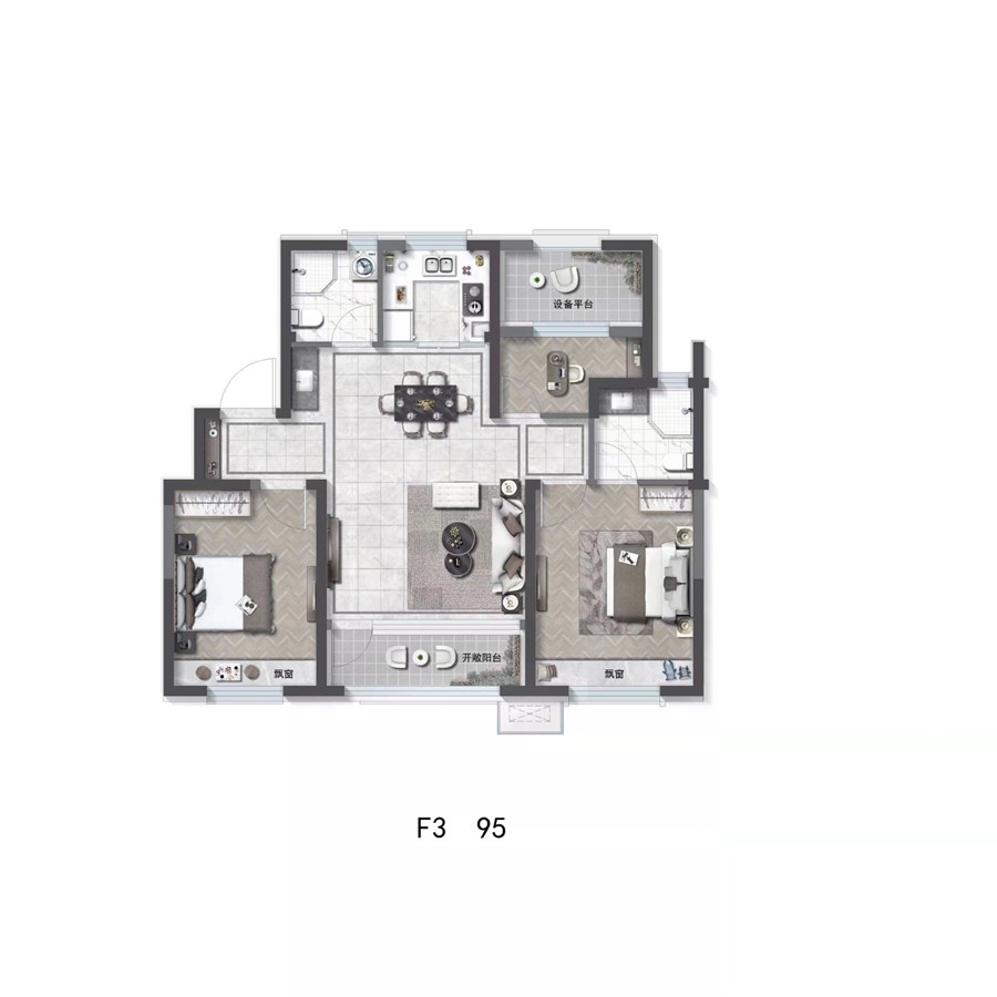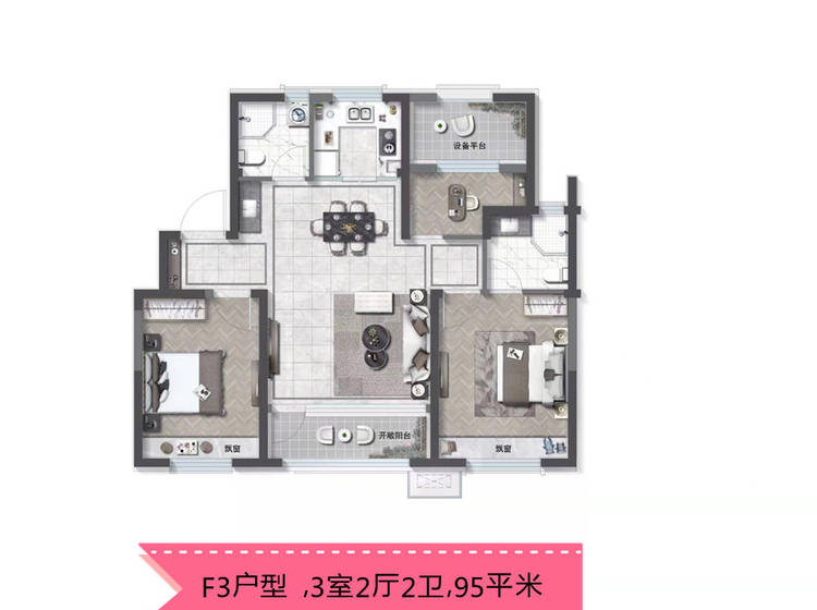 3室2厅2卫-F3户型 ,3室2厅2卫,95平米