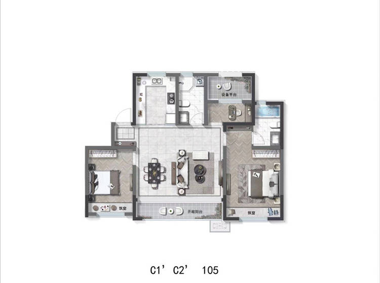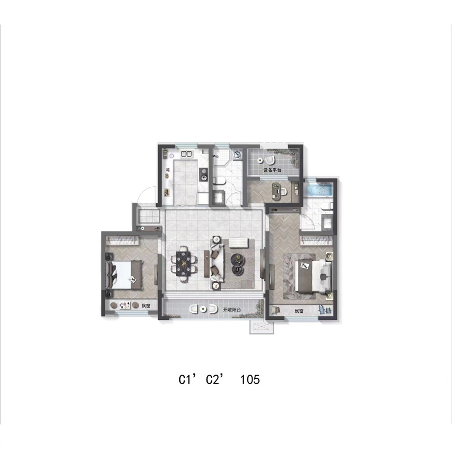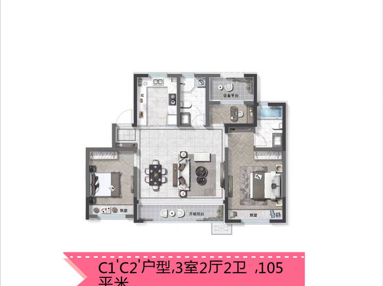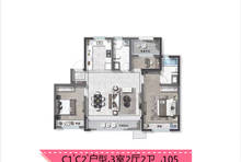 3室2厅2卫-C1'C2'户型,3室2厅2卫 ,105