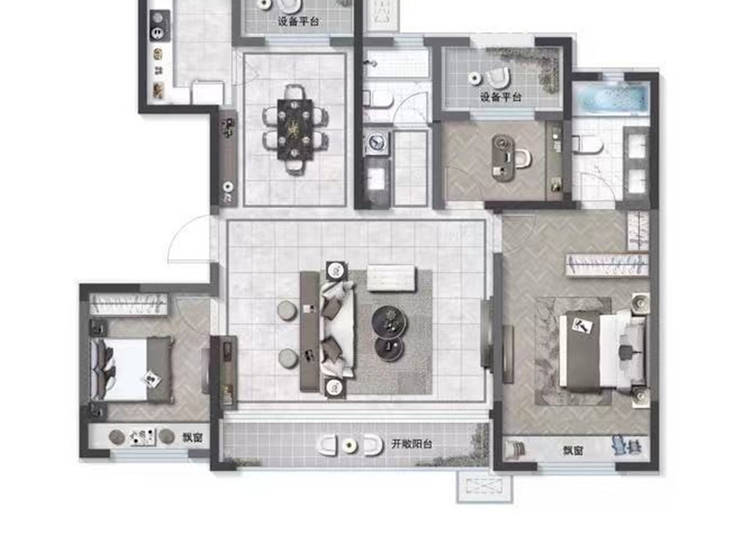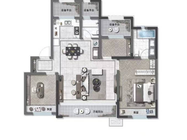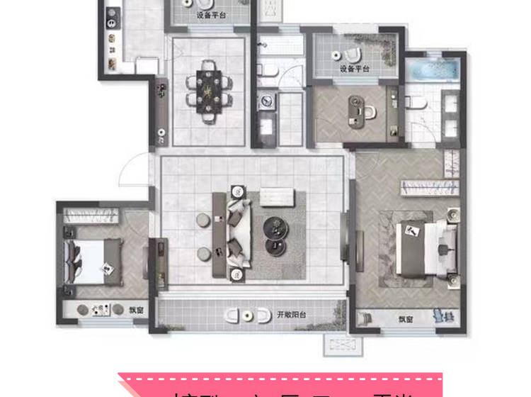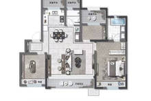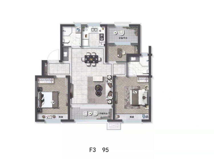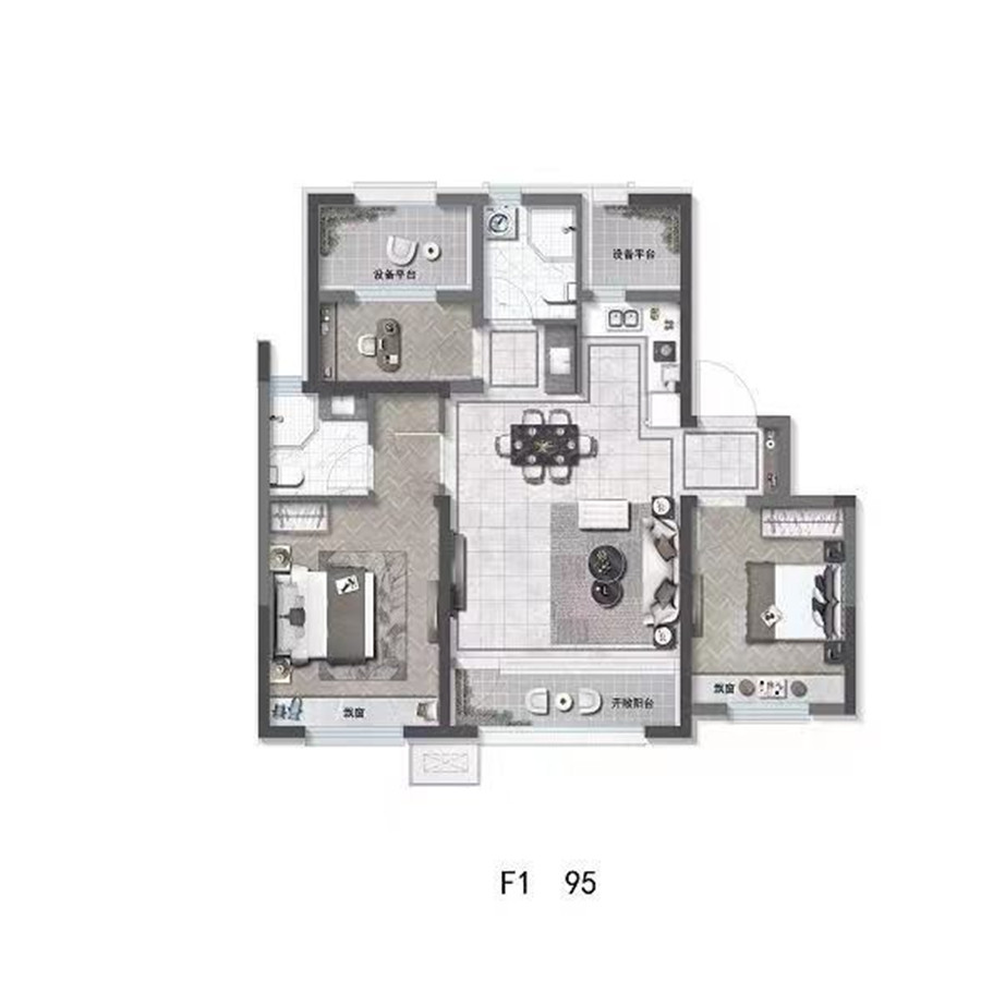 3室2厅2卫-F1户型,3室2厅2卫,95平米