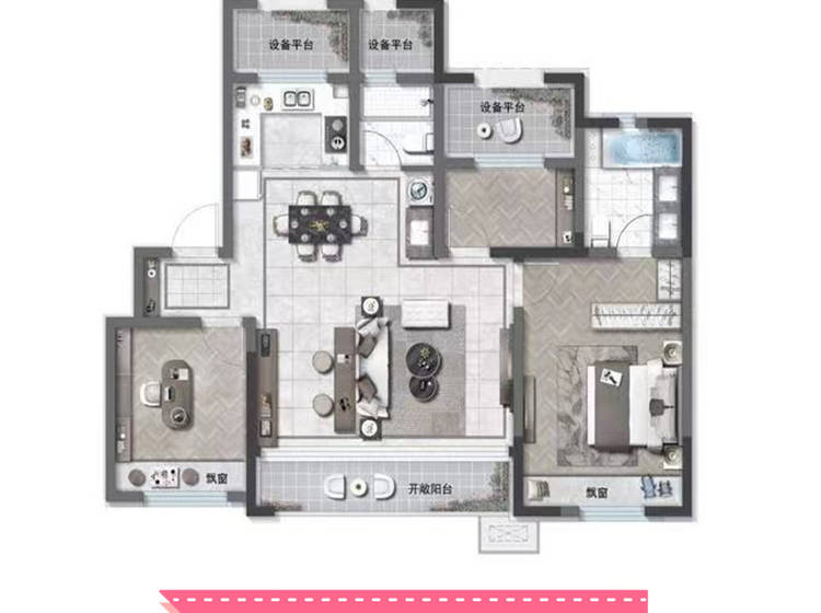 3室2厅2卫-E'户型 ,3室2厅2卫,128平米