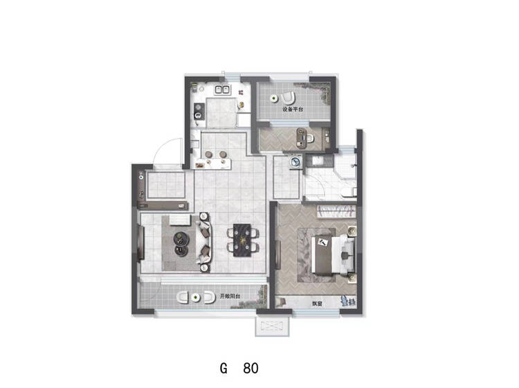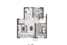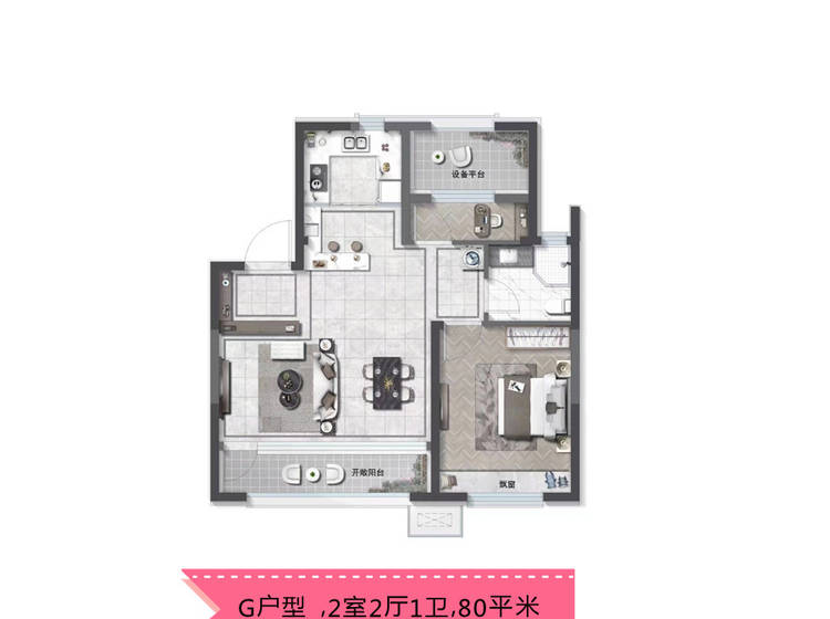 2室2厅1卫-G户型 ,2室2厅1卫,80平米