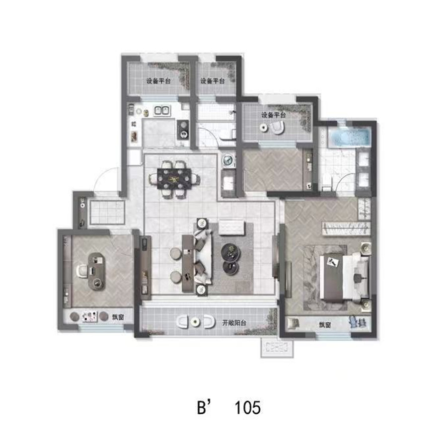 3室2厅2卫-B'户型,3室2厅2卫,105平米