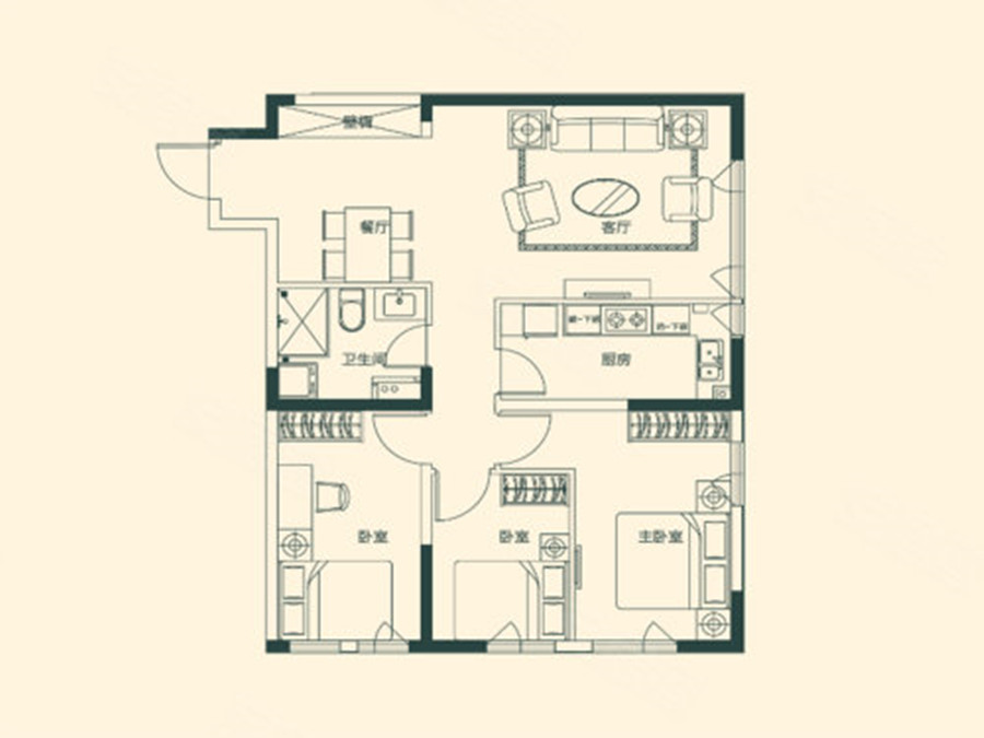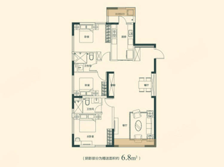 3室2厅1卫-3室2厅1卫1厨,107平米