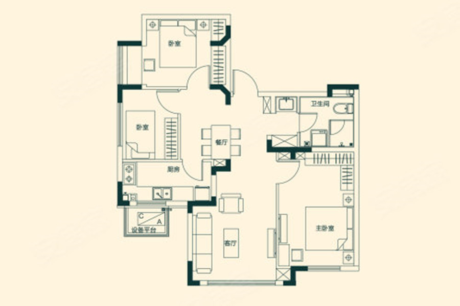 3室2厅1卫-3室2厅1卫1厨,133平米