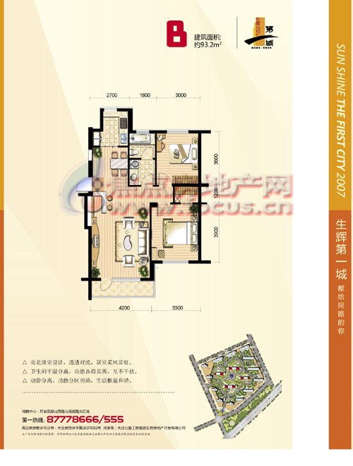 生辉排名前列城,是由8栋小高层,5栋高层,3栋18层的复式及1栋15层住宅组成,在规划上采用了半合围的空间布局,建筑物东南底西北高,较大限度的获得光照,社区内还规划了大面积的休闲草坪,以及儿童活动场所3000平米的景观广场与大型的水景广场形成景观主轴,景观中心还规划多处的运动场地.各种花卉灌木清新叠翠,让您享受健康的生活.