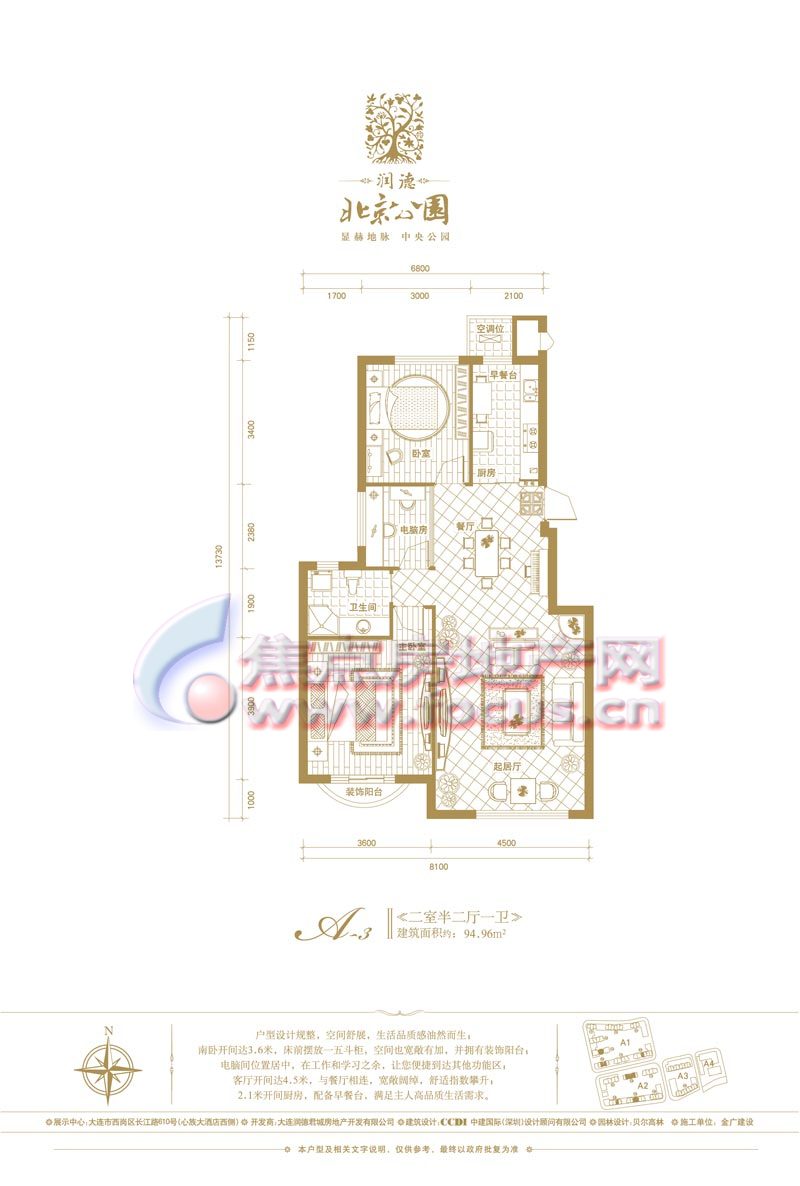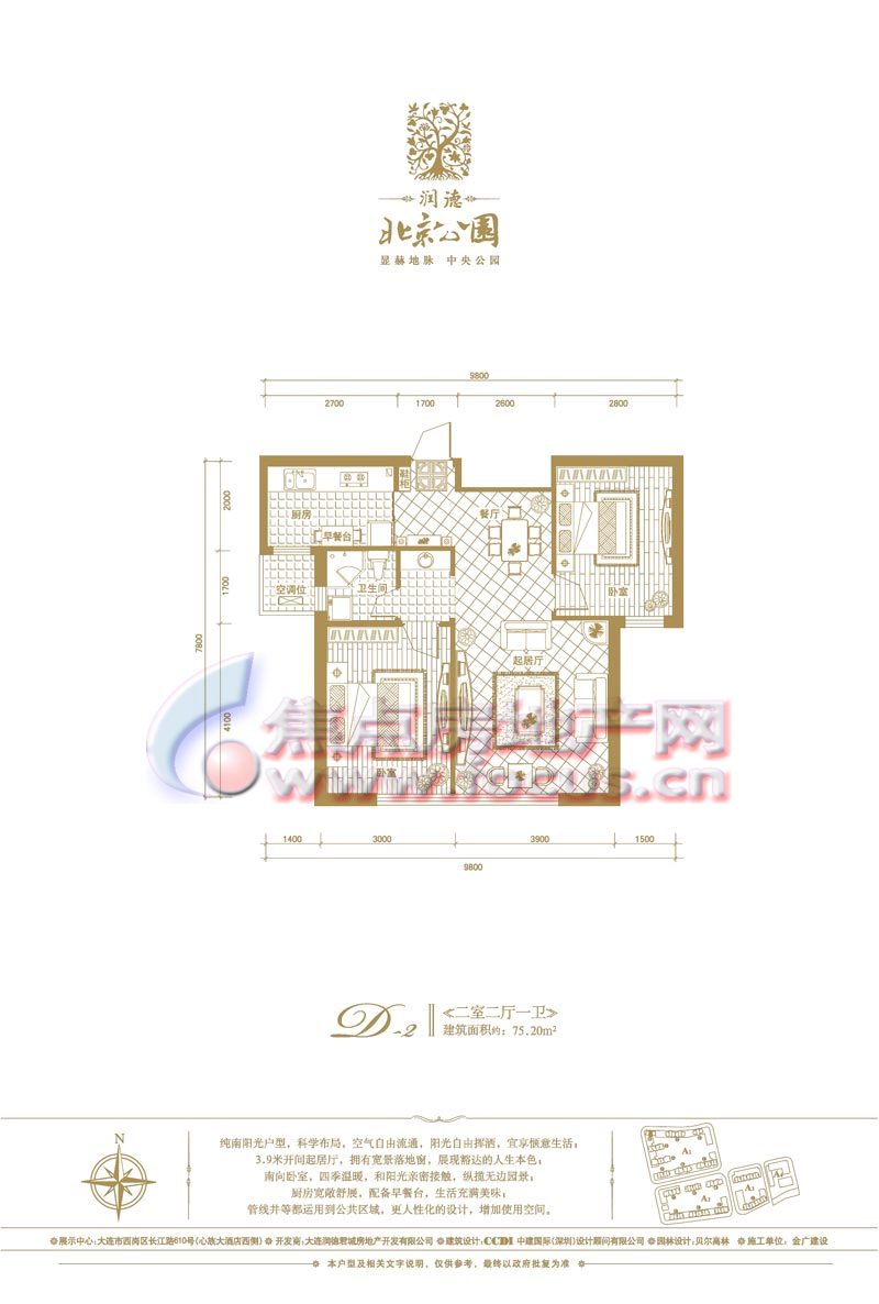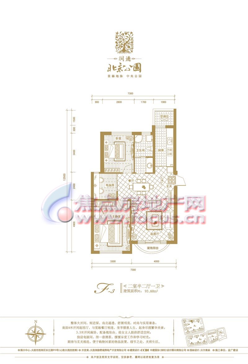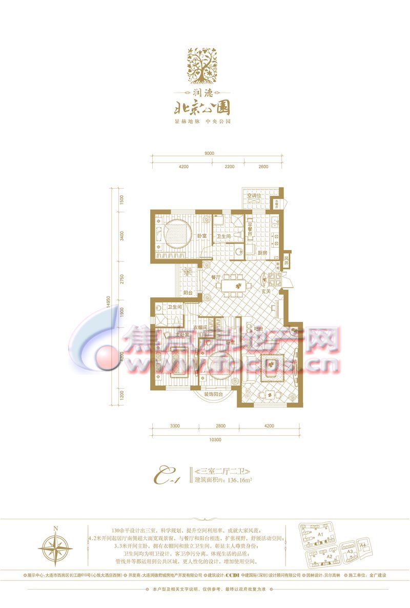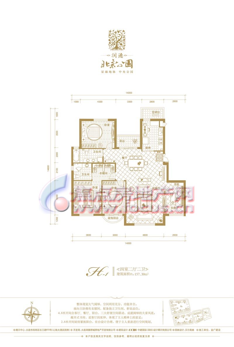 润德·北京公园是大连润德地产开发的公园品牌项目之一,位于大连中部商圈,北京街、长江路、新开路、鞍山路围合之中,占地面积约6万平方米,建筑面积约13万平方米,多层、小高层、高层错落排布,分为四大自然组团,规划出950套华宅,项目由国际知名建筑商CCDI中建国际(深圳)担纲建筑设计,打造欧式新古典建筑风格。项目园林由贝尔高林担纲设计,打造欧洲新古典皇家园林,再依据地块自然的坡地,规划出丰盛的景观群落。项目户型面积在30-209平米之间,科学的大开间、小进深格局,紧凑的空间动线设置,优质实现舒畅自然的生活享受。