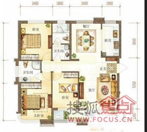3室2厅2卫-3室户型图3室2厅2卫1厨