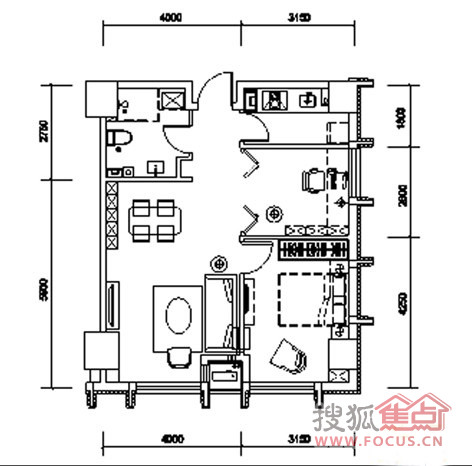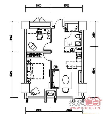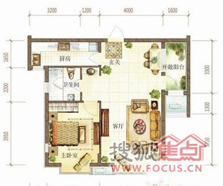 1室2厅1卫-1室户型图1室2厅1卫1厨