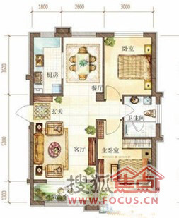 2室2厅1卫-2室户型图2室2厅1卫1厨