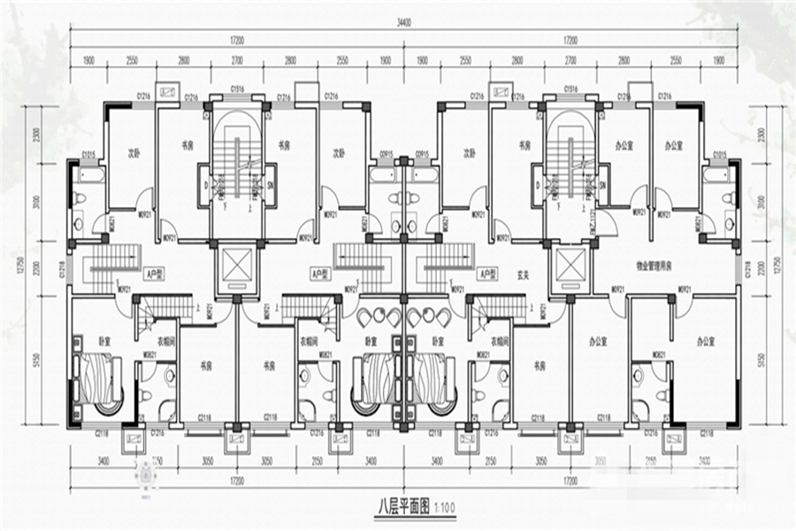 5室2厅3卫-九层住宅楼(2#)八层平面图