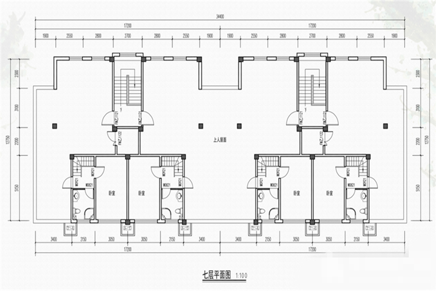 5室2厅3卫-七层住宅楼(3#、4#)七层平面图