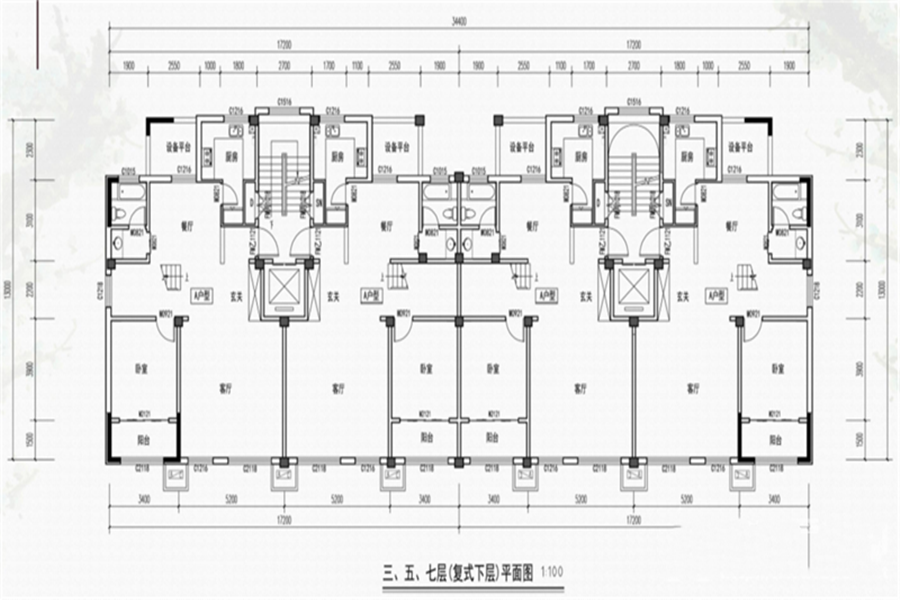 5室2厅3卫-九层住宅楼(1#、2#)三、五、七层复式