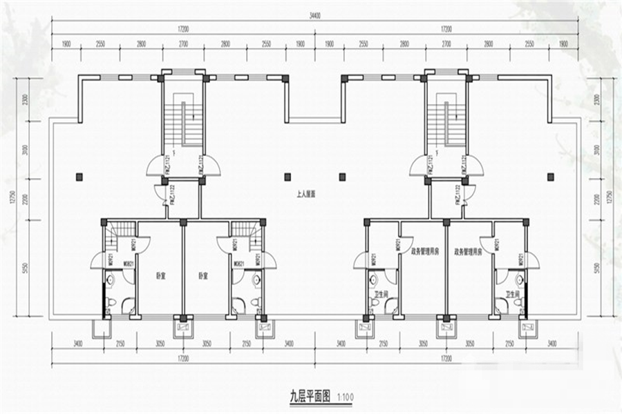 5室2厅3卫-九层住宅楼(2#)九层平面图