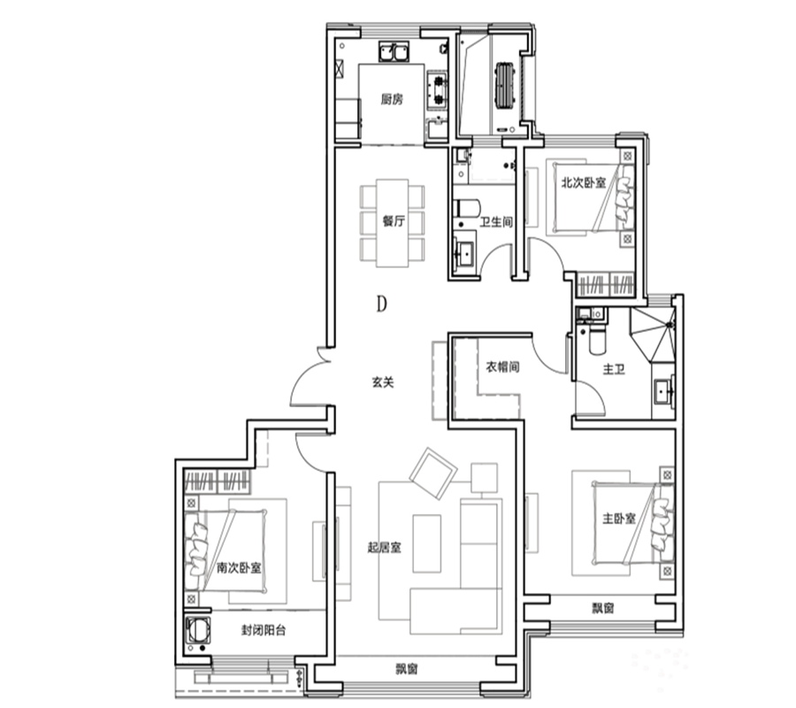 3室2厅2卫-D户型 165㎡ 3室2厅2卫
