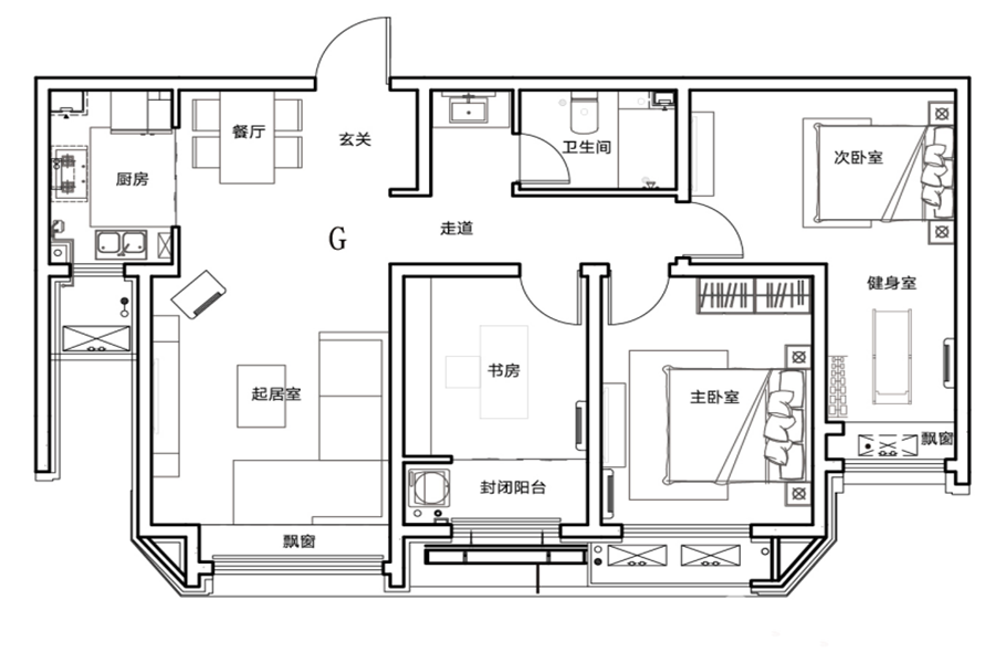 3室2厅1卫-G户型 116㎡ 3室2厅1卫