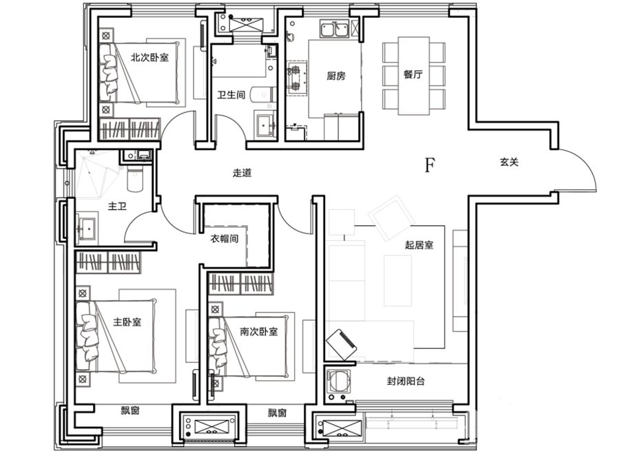 3室2厅2卫-F户型 142㎡3室2厅2卫