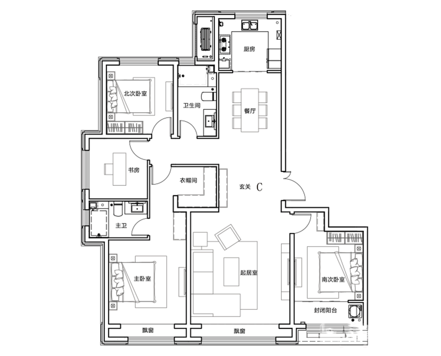 4室2厅2卫-C户型 177㎡ 4室2厅2卫