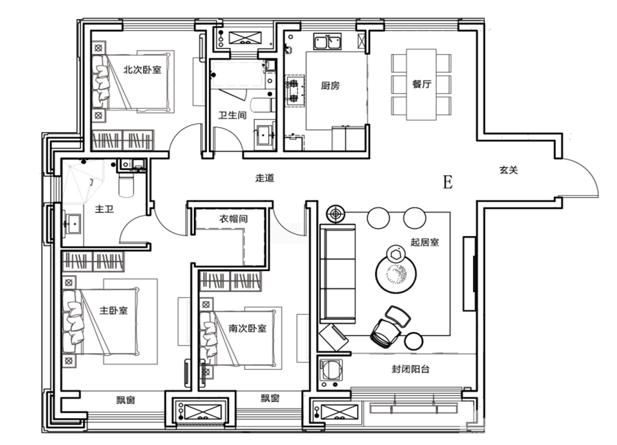 3室2厅2卫-E户型 156㎡ 3室2厅2卫