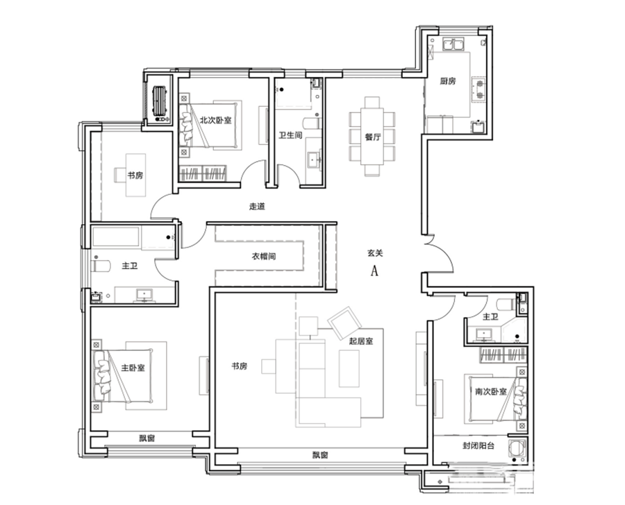 4室2厅2卫-A户型 218㎡ 4室2厅2卫
