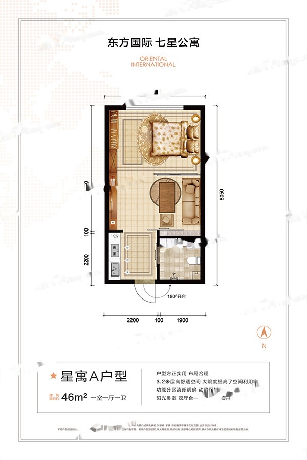 东方国际公寓是由大庆市新东方房地产开发有限公司投资开发,大庆市新东方建筑安装工程有限公司承建本案是大庆东城开发区核心区位,地处政府重点打造的宜居教育版块,以先进的设计理念,将智能科技与精工品质融入到住区,打造大庆首席智能七星公寓品质住区。 价值优势明显,处于城央少有地段、超低总价,投资自住皆可,未来升值空间巨大,非常适合刚工作几年的年轻人、有婚前置业计划的女性,并且投资回报周期较短,年租金可达1.5万/年-1.8万/年,15年收回投资成本,并且周边房价领涨全市,投资潜力巨大。 本案毗邻大学城、大庆市图书馆、大庆市博物馆等社会教育资源,可以说此区域是大庆东城版块最为成熟的书香之地,同时,项目处于本区域内的城央之地,所属69中二部、机关五小双学区,据了解,未来高中入学也会实行学区制,那么实验中学将成为项目的所属学区,可以说项目是在本区域内总价较低的学区房,非常适合准备要宝宝或宝宝在0-3岁之间的家庭!其次、项目临近大学城商圈、唐人中心商圈、距新玛特商圈仅为2公里,距毅腾教育商圈3公里,距万达商圈4公里,奢享5大商圈。 医疗配套方面,除了一路之隔的眼科医院、肿瘤医院外,约600米便是大庆市规模较大、设备较先进的大庆市人民医院,是真正的养在家中,医在身边的医养项目,也是大庆排名前列落地的医养结合项目,根据老年人群体特质,项目配备了3台无障碍电梯,多处无障碍通道(同时房间内配备了一键呼叫救援系统),是为父母养老置业的优选。 出行便利(一路、两环、三路、主枢纽),临近开发区政务中心,坐拥便利的交通、丰富的休闲教育医疗资源,东方国际是“城央核心、医养结合、名校环绕、出则繁华、交通便利,入则宁静,书香宜居“性价比较高、总价超低的品质住区。 产品价值:项目主要以挑高3.2米的公寓为主,分布在2-24层,分南北两个朝向,6梯27户,建面约46--58 m2部分单元可打通,25-27层为建面约46-58 m2挑高5.5米的loft产品,设置了3部无障碍电梯,2处消防疏散楼梯。 项目与多家世家品牌及国内一线上市公司进行战略合作,施工各个环节严格执行国家一级施工标准。30米机压浇筑村庄,1.8米厚一休浇筑地基、三层东方雨虹SBS一级防水卷材、久诺一级保温装修一体板、东芝高速稳定电梯、精装入户大堂及公共区域、群升甲级安全入户门及智能指纹锁,久格三层中空玻璃铝塑铝窗等 新东方地产,坚守匠人精神,树立精品工程、打造样板案例,以品质为先,为大庆百姓打造首席七星公寓。 东方国际推出无理由退房政策,在交房时,由客户验收,不满意即可无理由退房,同时退还已交款项同期银行存款利息。是真正做到了无理由退房、不设门槛、没有限制、所有工程施工标准、门、窗、锁等圴写入合同,让老百姓买的放心,住的安心。
