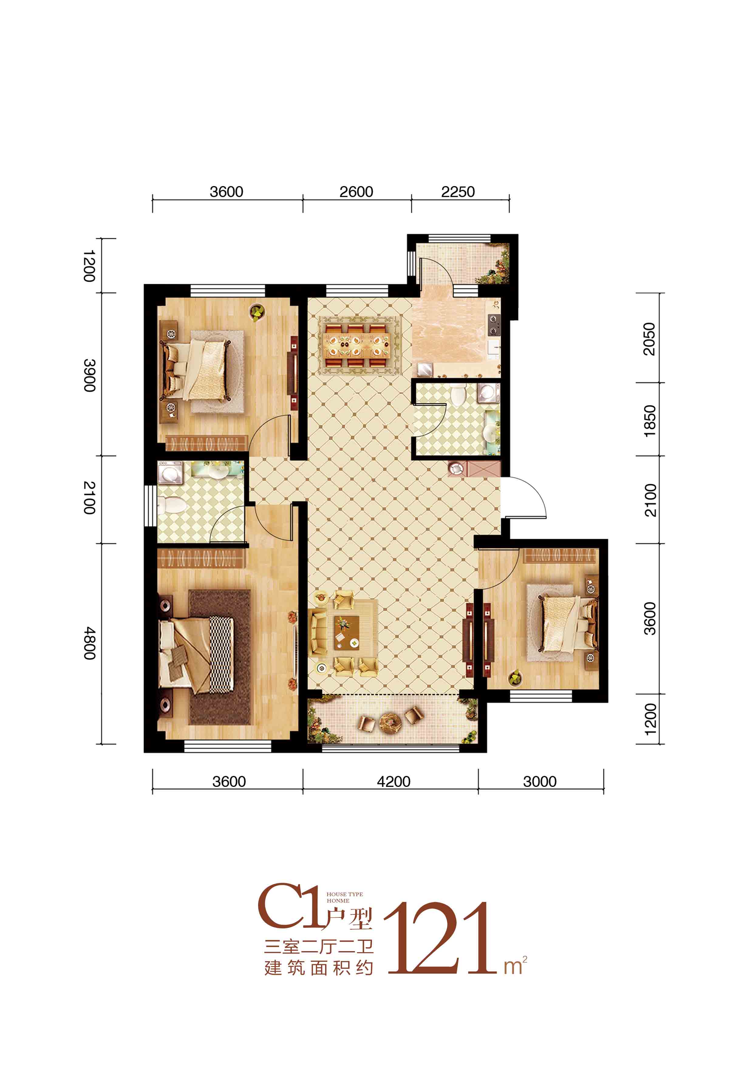 3室2厅2卫-C1户型三室二厅二卫121平