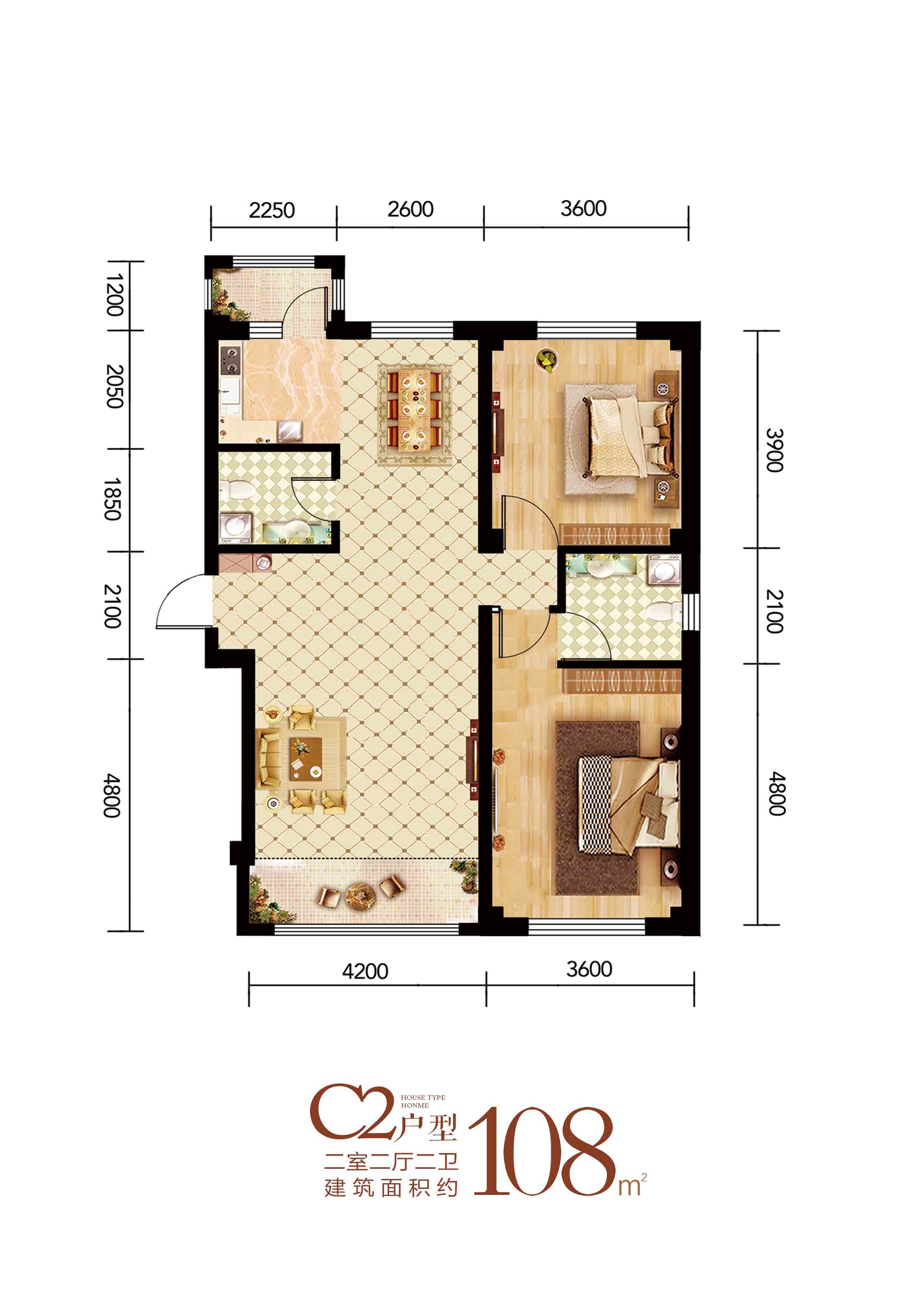 2室2厅2卫-C2户型二室二厅二卫108平
