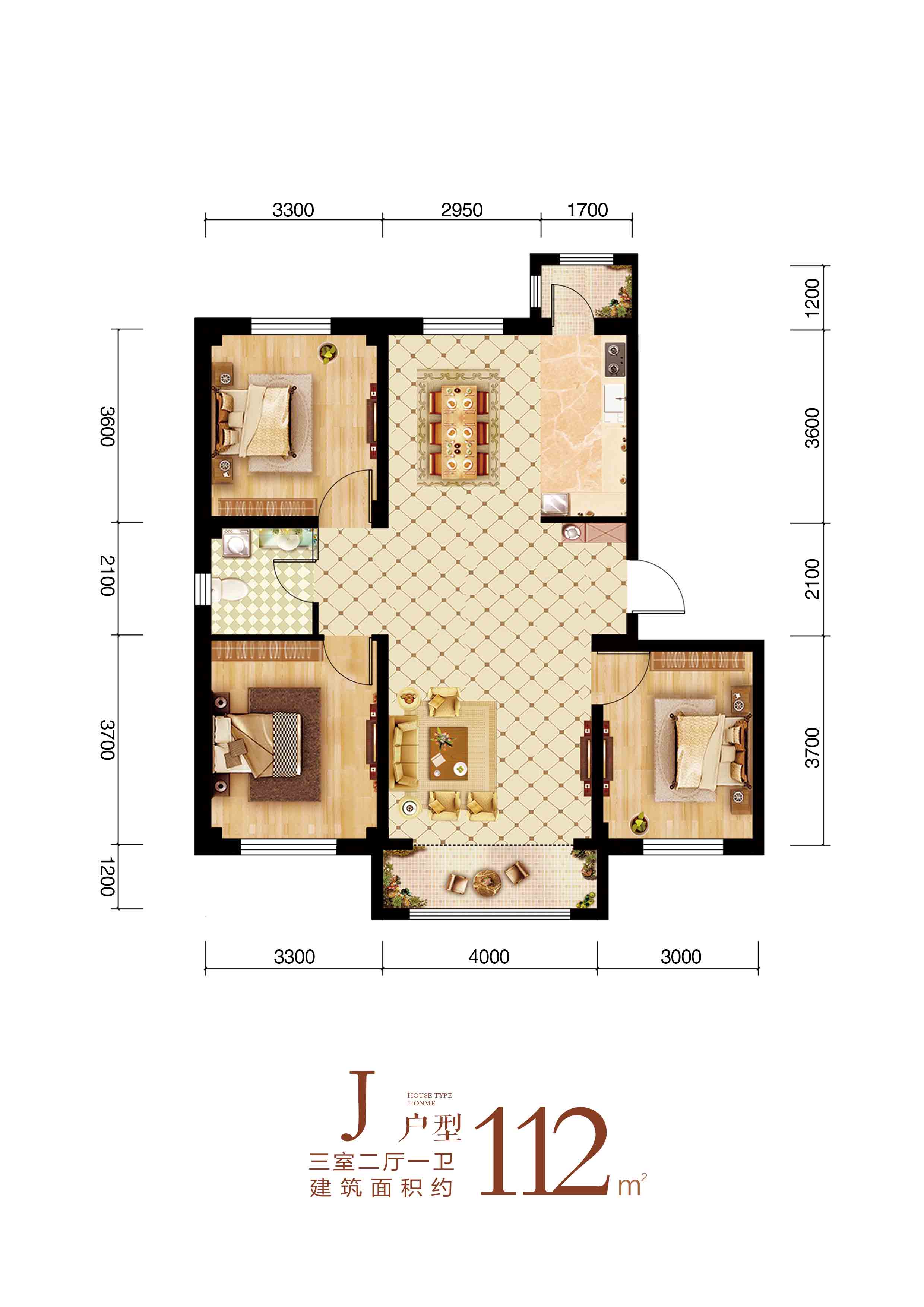 3室2厅1卫-J户型图三室二厅一卫112平