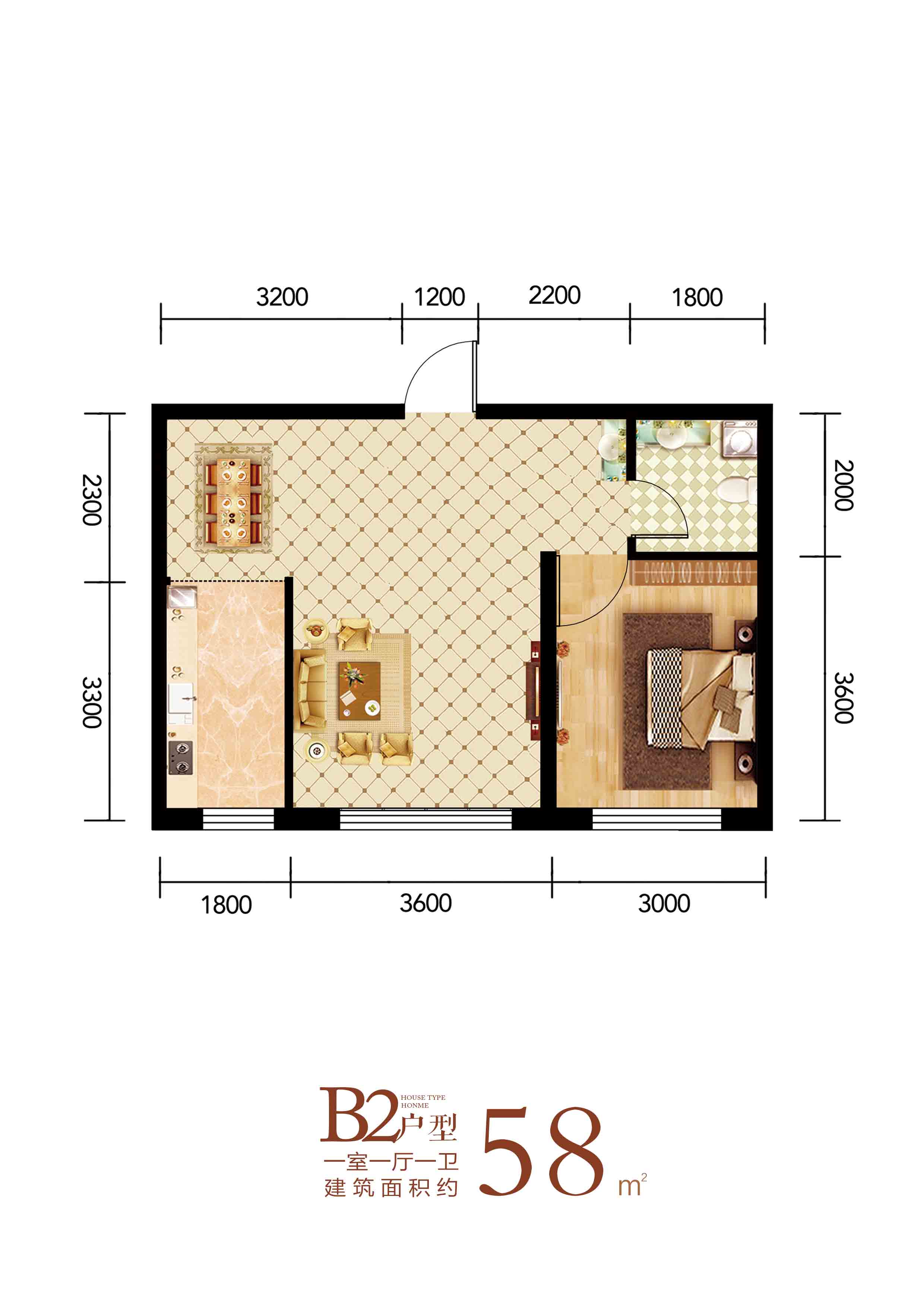 1室1厅1卫-B2户型一室一厅一卫58平