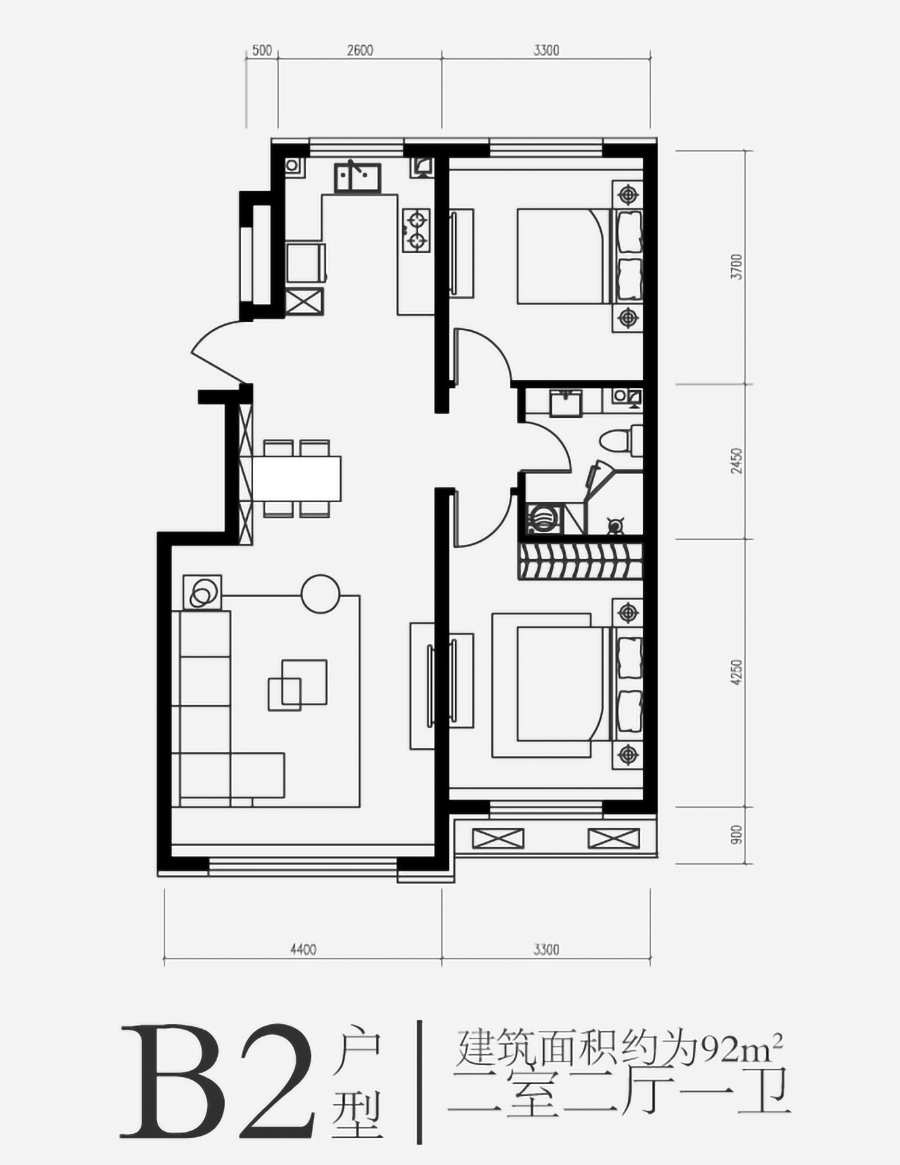 建面92平米阔居两室,6.2米的超大客厅设计,从一进门开始就显示出了主人的气度;南北双卧室的平衡设计,不但在景观上可以较大化包揽无余,在房型的设计上也是把持有度,不浪费任何一处空间。南卧室设计独立卫生间,次卧卫生间为全明设计;厨房L型敞开式设计,与餐厅相互呼应。阔居两室让生活更加从容,气度非凡。