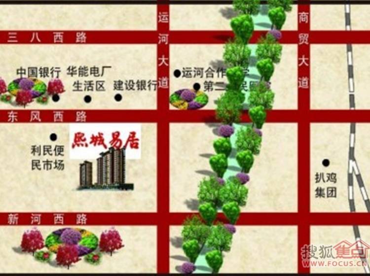 建行,中行,邮政,美食城,便民市场,第二人民医院,运河合作小学