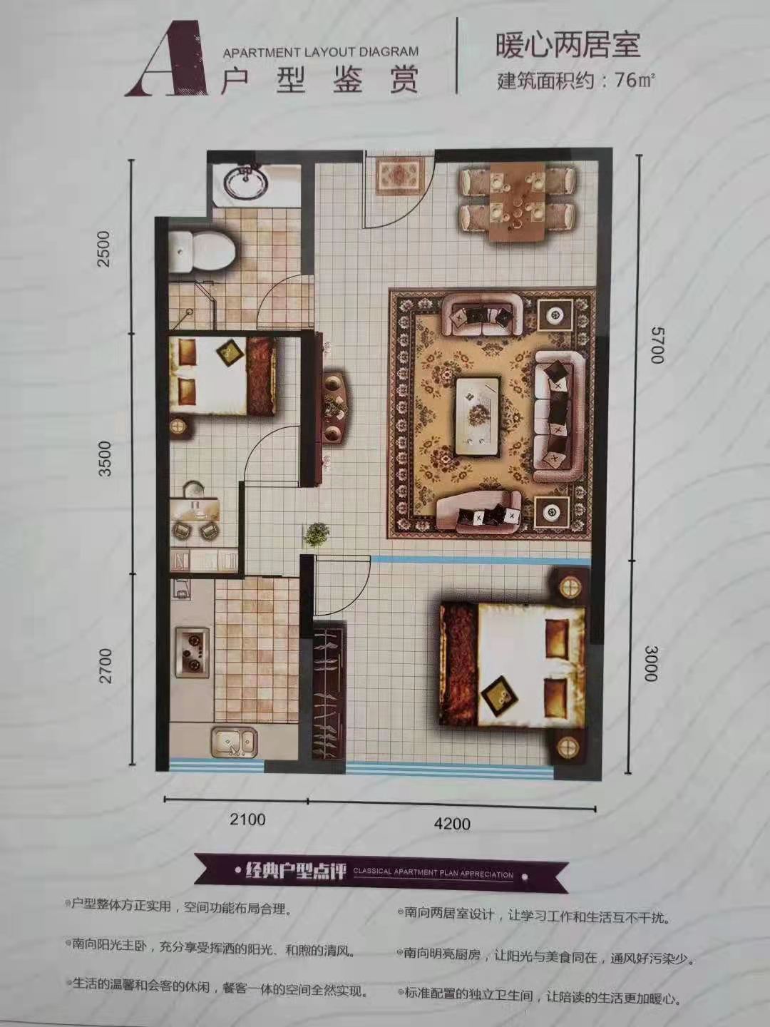 4、户型方正、室内无梁无柱,居住舒适度高;