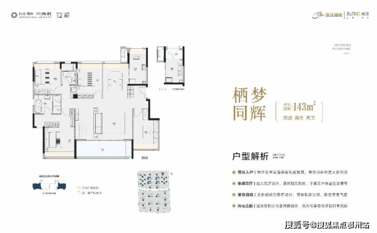 项目洋房 建面约143㎡户型体验感更是直追180㎡大平层。无论是独立玄关,气派大横厅、阔绰四房……每一处设计都直击改善家庭对空间和功能的深度需求。
