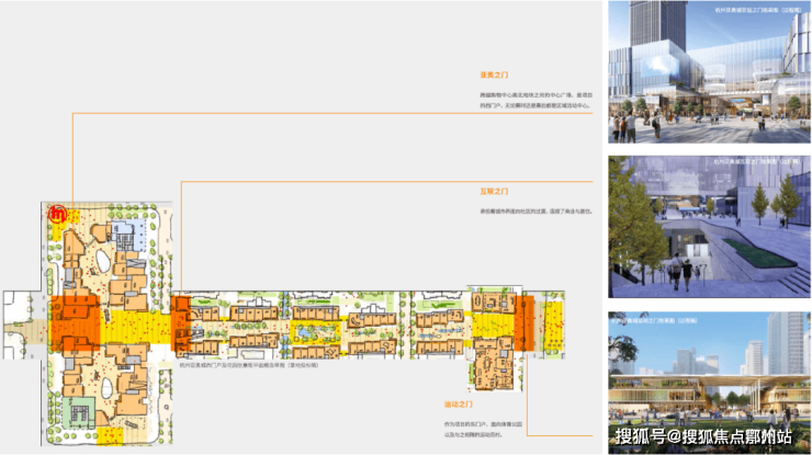黄金街区轴线以及轴线西端的购物中心,同时承担着整个亚奥城的商业功能;无论是赛时还是赛后,其都被赋予城市目的地的定位。