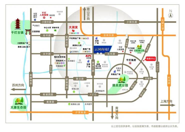 🏆【区位价值】 ——— 千灯镇,位于江苏省昆山市南部,东邻上海市青浦区,区域面积78.5平方公里,常住人口约22万。现下辖12个社区、16个行政村。