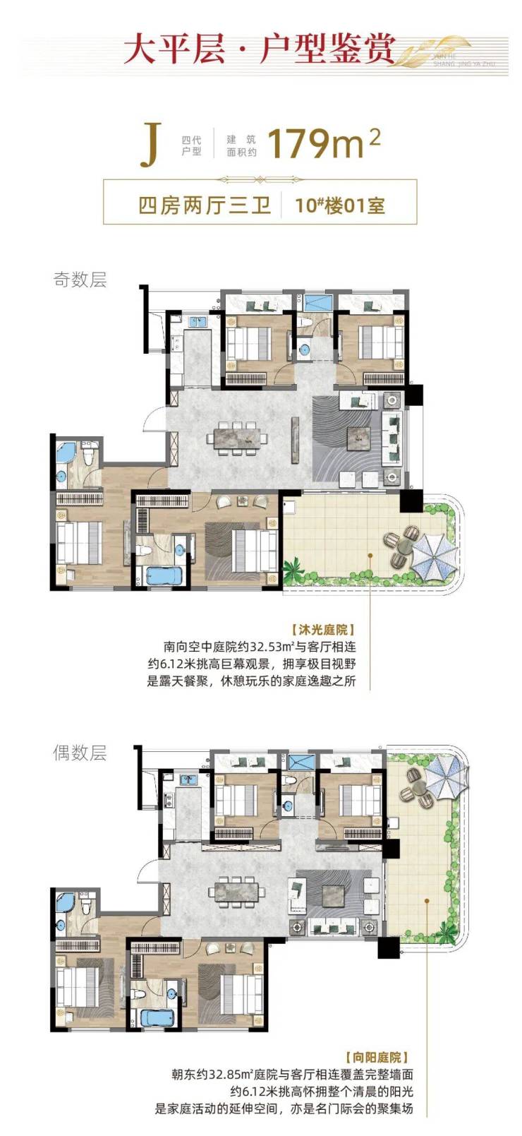 【阔景大面宽】无限视野超大面宽,奇数层约17.7米;偶数层连通庭院约19米,藏级大平层致敬生活。