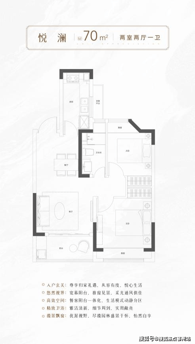 建面约70-90m²悦境高层,精工二至三房户型,延续墅区景观规划与绿化空间,舒享同等低密环境,举目瞰景,安适悠然。