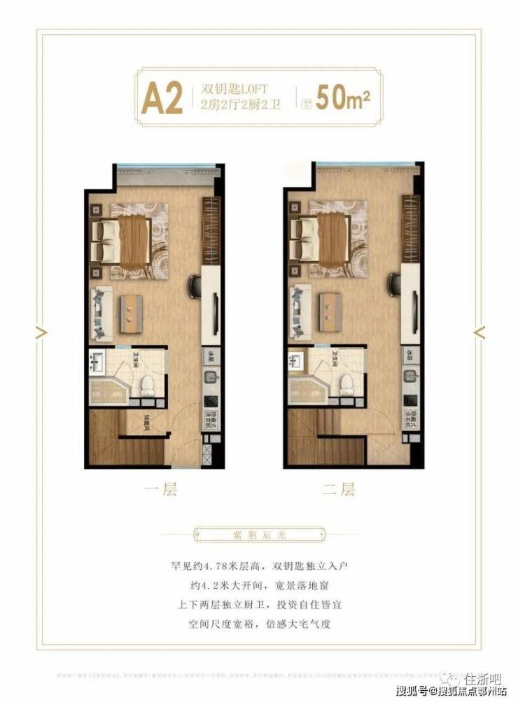 紫荆辰光此次产品主力户型约45-60㎡的双钥匙LOFT。突破性采用杭州市场上难得的约4.78米层高设计,居住舒适度大幅提升,能够真正奢享两层空间。