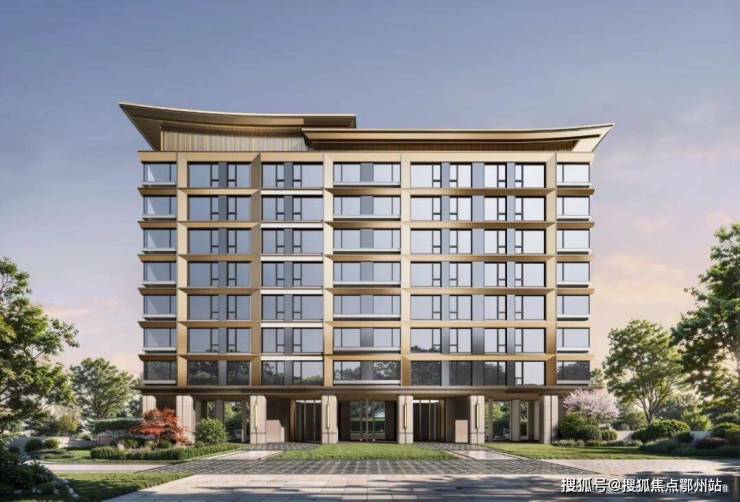洋房立面以石材为基座,三面大面铝板搭配建发标志性的中式飞檐造型,极具美感和辨识度。