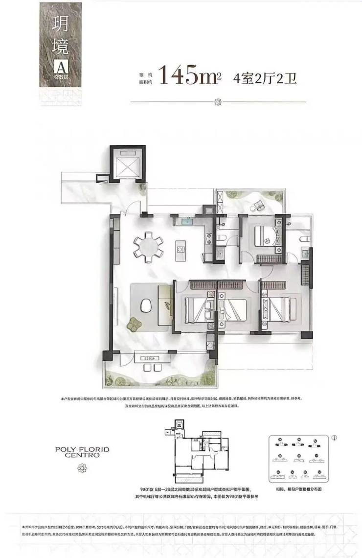 145平拥有独立的电梯,相当于是一梯一户,品质提升。145平也是四开间朝南,且是四代宅,南北都有露台赠送,奇偶层露台位置不同。另外主卧为两面采光,预计朝东会设计成落地窗。