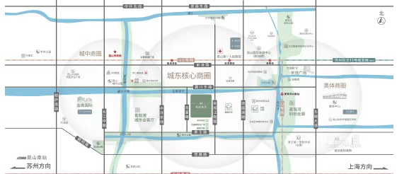 配套内国际会展中心,承接各类展览、大小型会议、文艺演出、大型宴会、新产品发布会等,拥有国际标准化的展览和会议中心;奥体中心,集体育竞技、休闲健身、商业娱乐于一体的城市体育综合体,致力于打造“10分钟文体生活圈”;昆山艺术宫、开发区休闲体育中心等,集运动、商业、休闲为一体,满足全龄化休闲娱乐需求。
