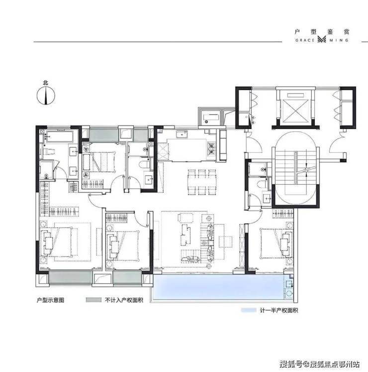 户型面积:建面约143㎡、170㎡、203㎡