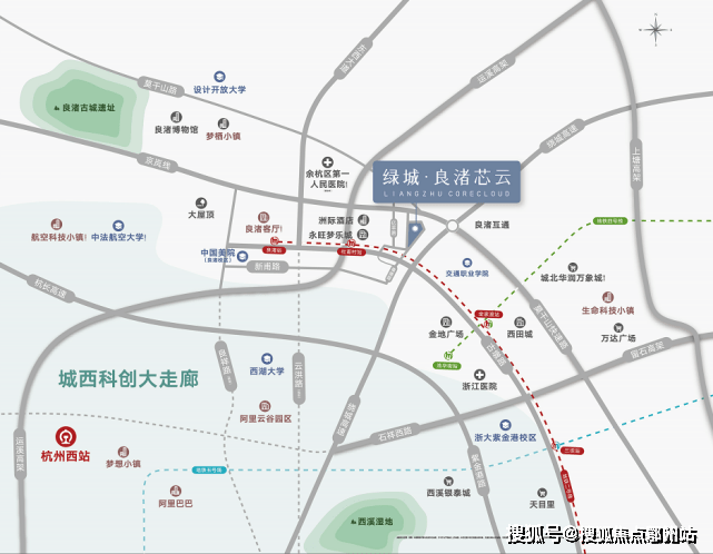 绿城·良渚芯云(良著不夜城)傲居于良渚数字文化社区,阿里云、煎饼控股等龙头企业,平高创业城、起梦科技园、未来之光等商务人群,