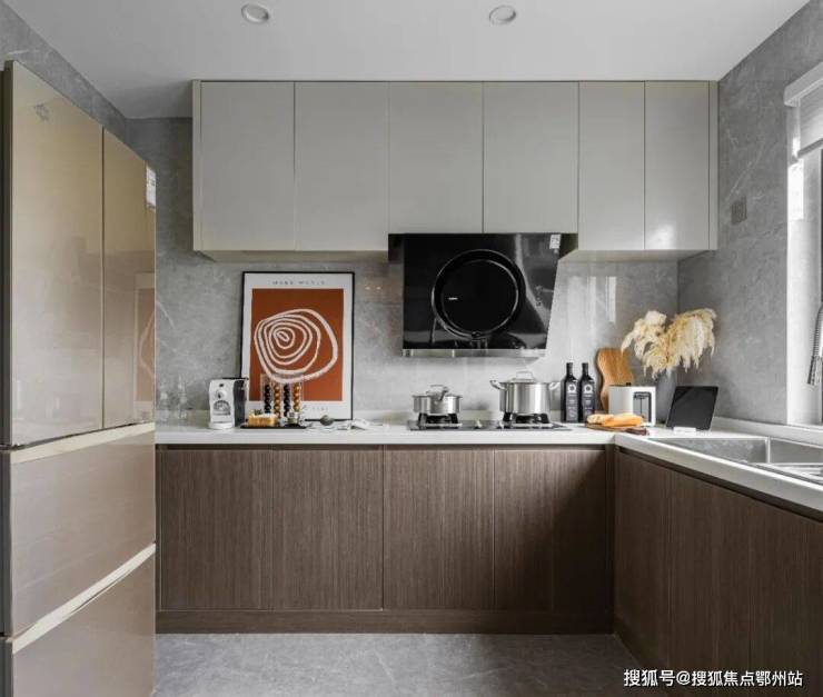 厨房紧挨着餐厅,U型灶台设计,不论是中式烹饪还是西点烘焙,擅长厨艺的太太都能在这自由发挥;餐客厅一体化,摒弃多余隔墙,使得整个空间更为开阔敞亮。