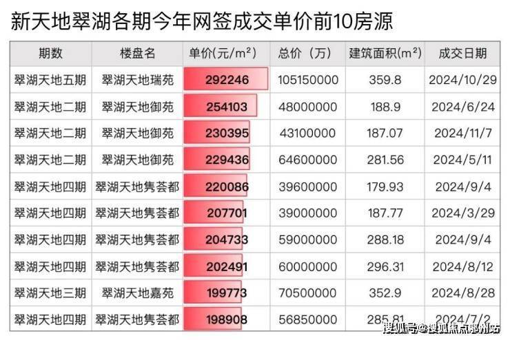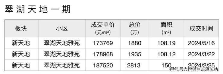 ④最后来看翠湖前5期的成交价格: