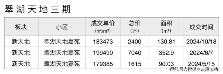 三期嘉苑最新1套成交来自今年10月份,单价约18.3万,总价2400万;