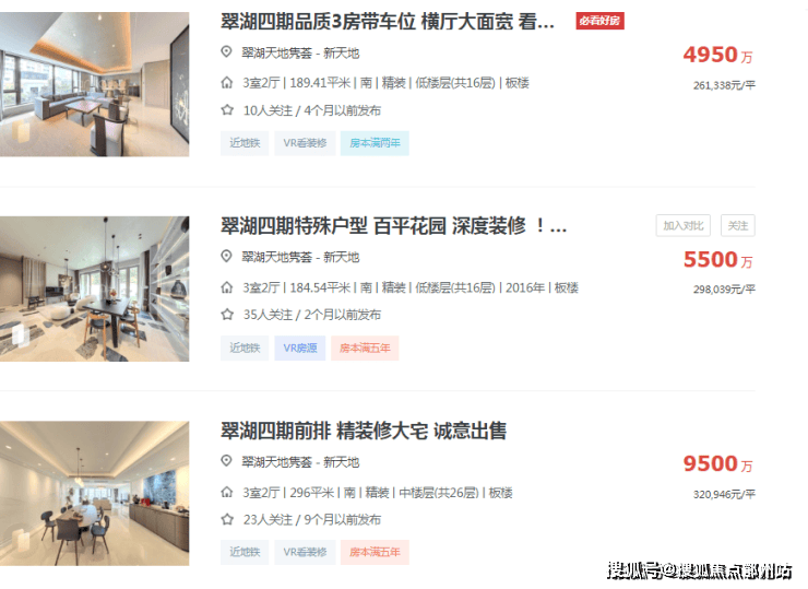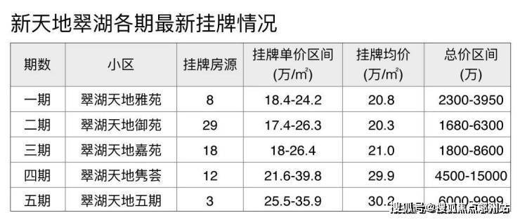 ①先看翠湖天地前5期的最新挂牌情况: